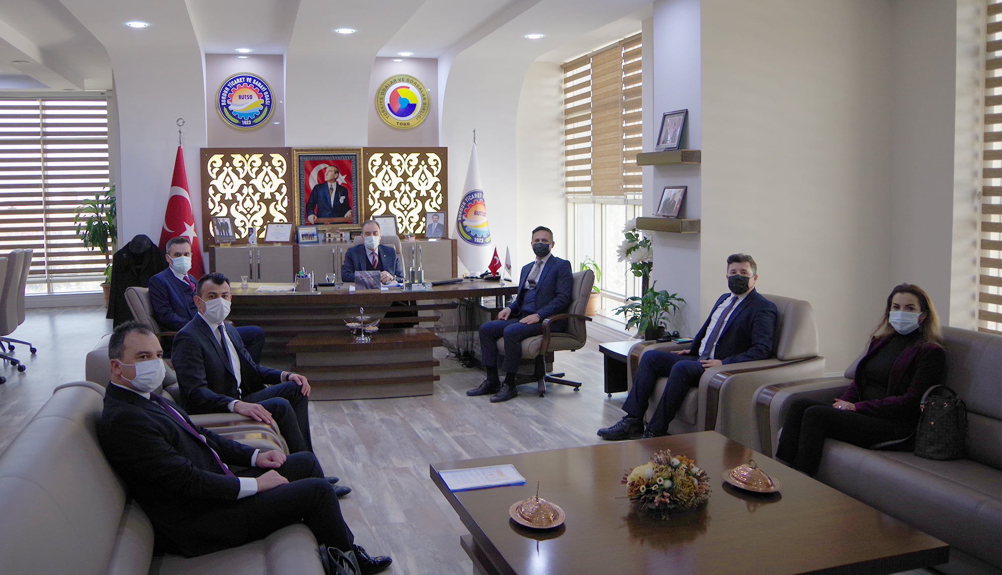 Devlet bankalarının pandemi sürecinde sağladığı kredi ve destekler, finansman çalışmaları ve pandeminin KOBİ’lere ekonomik etkileri hakkında görüşmelerin yapıldığı ziyarette, Burdur ekonomisine ilişkin genel değerlendirmelerde de bulunuldu. Yönetim Kurulu Başkanımız Yusuf Keyik, Vakıfbank Bölge Müdürü Mehmet Arıöz ve beraberindekilere teşekkürlerini dile getirip, çalışmalarında başarılar diledi. Ziyarette Meclis Başkanımız Ömer Çeliker de hazır bulundu.